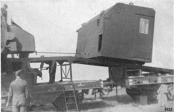 Eisenbahnwagen verlastet. Das Gerät wurde zum Betrieb auf dem Sockelwagen